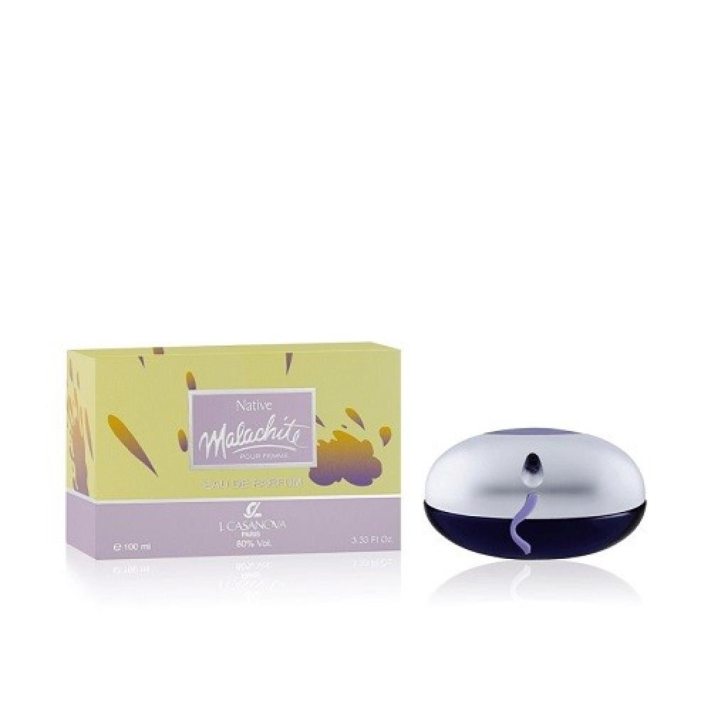 عطرنيتف مالاكيت من ج. كازانوفا المصمم للمرأة هو عطر برائحة الفواكهة الحلوة والزهور العطرة. العطر يأتي على شكل علبة زجاجية جميلة مغلفة بغلاف مرح مصبوغ باللونين البنفسجي والأصفر. يحتوي على 100 مل من العطر
