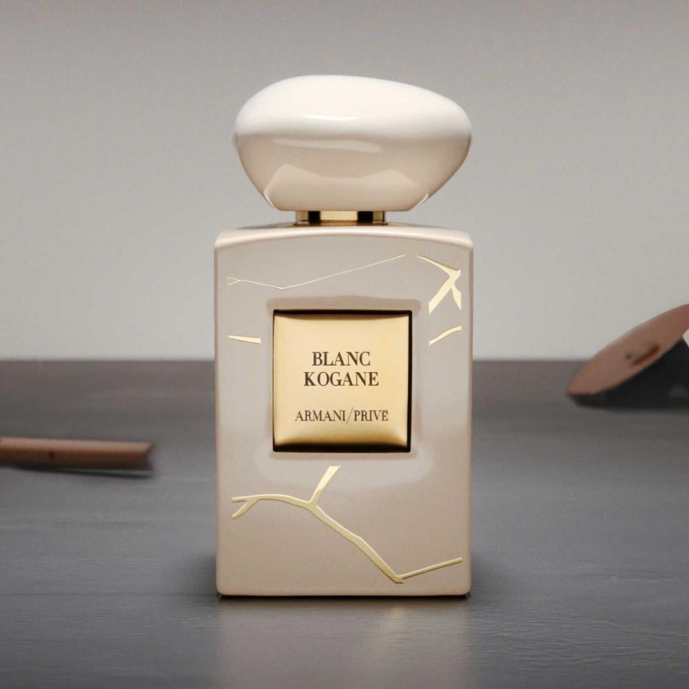 "في عام 2024، يقدم جورجيو أرماني بلانك كوجاني وبلانك كوجاني، ثنائي جديد يضم أحدث الإضافات إلى مجموعة عطور أرماني/بريفيه هوت كوتور. كل زجاجة مصنوعة بعناية بألوان عاجية وسوداء عميقة ومُزينة بأنماط ذهبية لتعكس قيمة فخار كينتسوجي وتحتفي بهذا الفنالقديم.