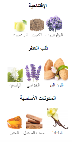 ويتبعها قلب التكوين برفقة الخزامى، اللوز المر والياسمين.