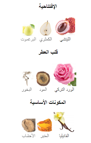 قاعدة العطر تتكون من الأخشاب, العنبر و الفانیلا.