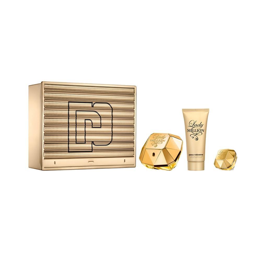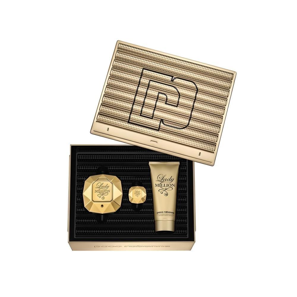 يأتي عطر Lady Million الرائع من Paco Rabanne في زجاجة ذهبية اللون مصممة لتشبه الماس. الرائحة الزهرية الفاكهية عبارة عن مزيج عطري من التوت والياسمين والبرتقال المنعش والعسل الحلو. اللمسة النهائية المثالية لإصدار مسائي منسق.